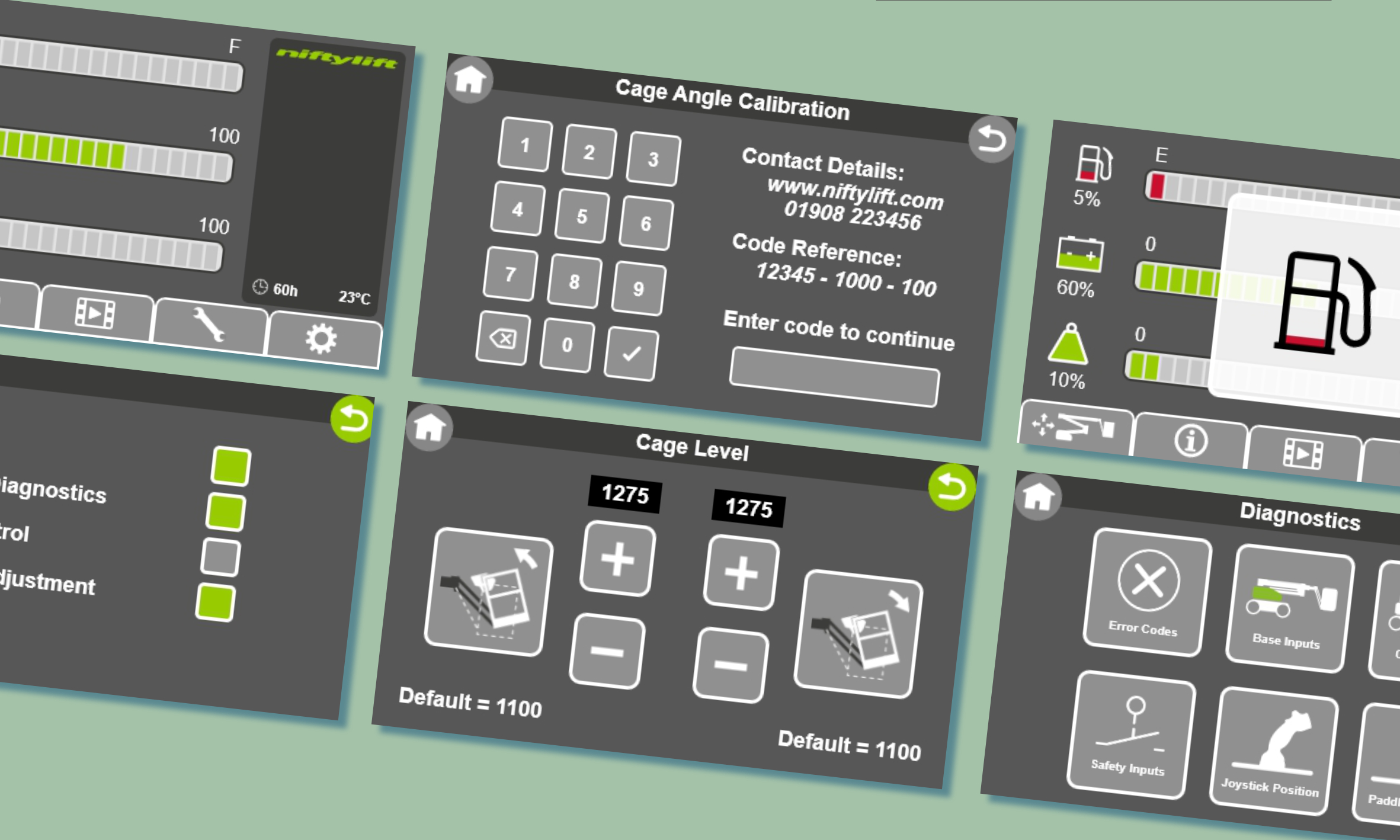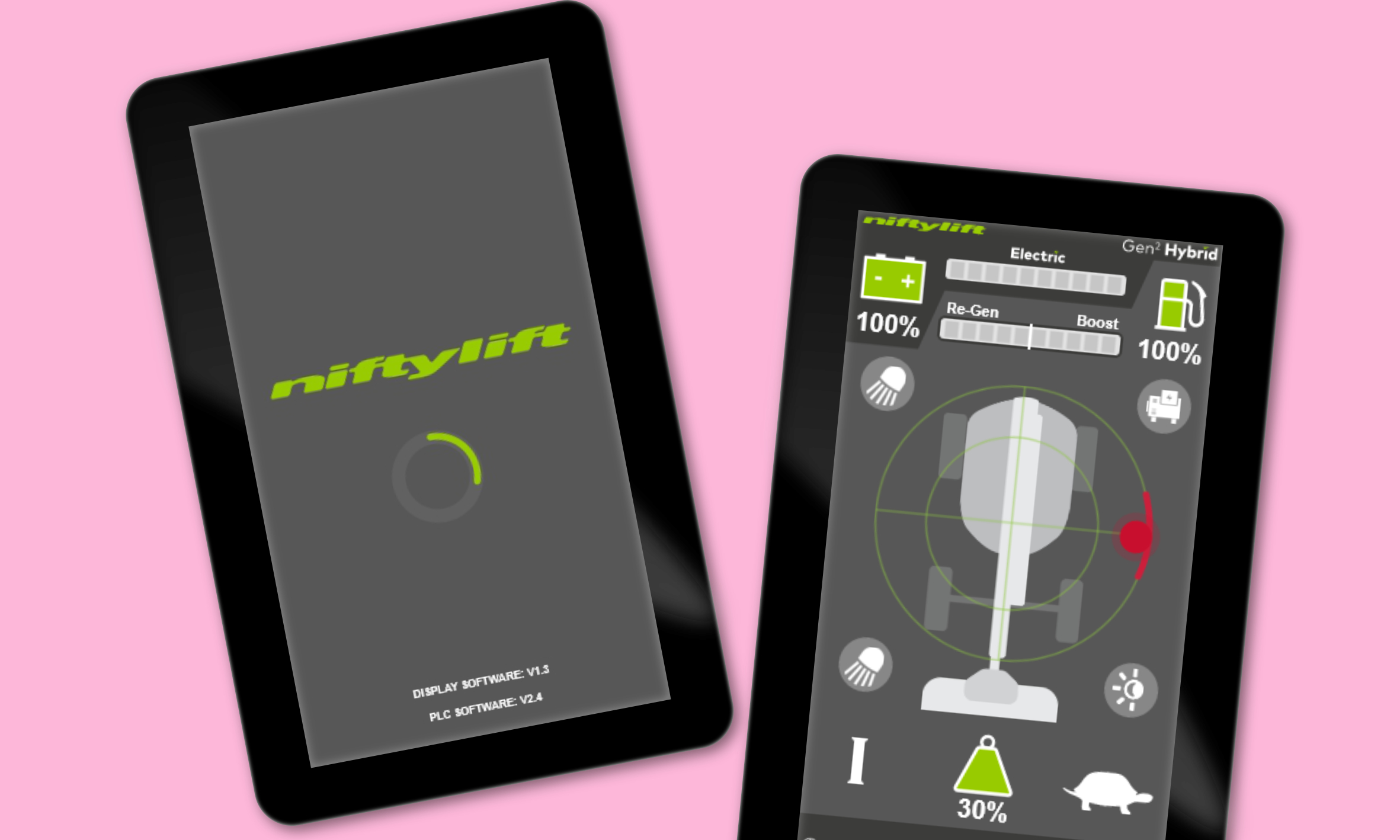 While working as a Product Designer at Niftylift, I led the design of the operator interface for their next-generation machine display. Collaborating closely with in-house software engineers and external manufacturing teams in China, I transformed complex machine behaviours into a clear, safety-driven interface. From early interaction models to reviewing physical hardware samples, I shaped the display’s visual language, interaction patterns, and task flows, ensuring it remained intuitive and reliable in tough, real-world environments.