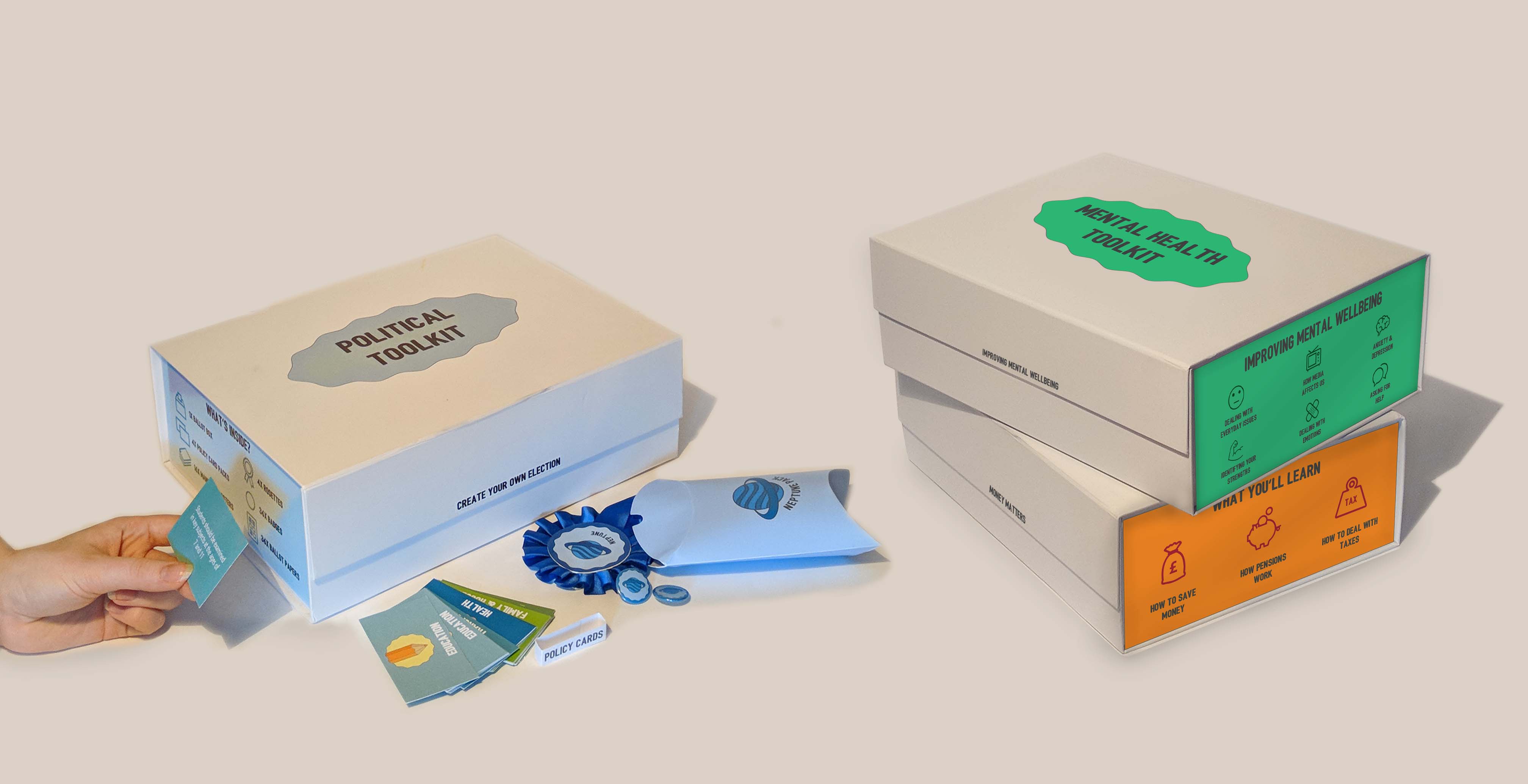 The Political Toolbox was designed as a practical, ready-to-use classroom kit that makes politics tangible, engaging and fun for students aged 15–18. Through role-play, debate and a mock election, students build their own political parties, craft manifestos, and vote using a ballot box that forms from the packaging itself.