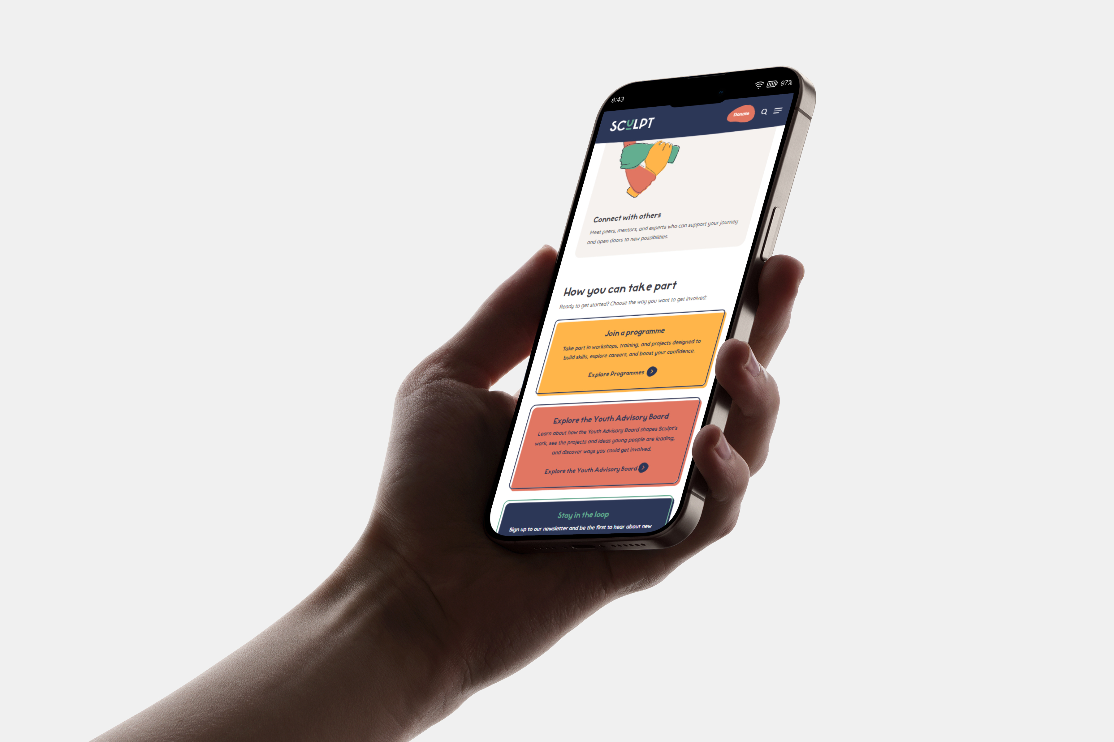 Our work helped shift Sculpt’s identity from academic and inaccessible to warm, youth-centred, and empowering, making their purpose immediately clear to young people, partners and funders.